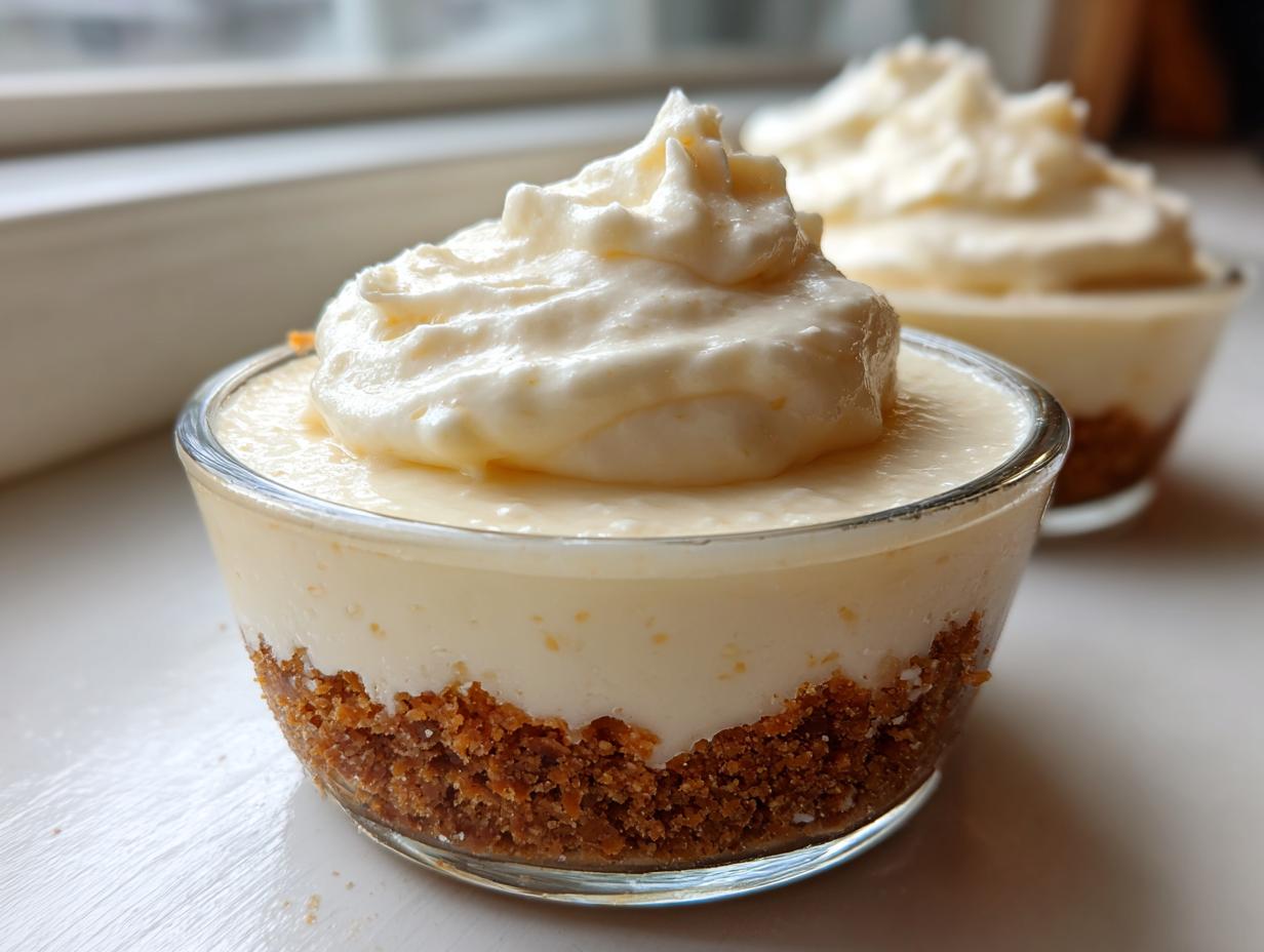 Easy no-bake cheesecake cups with a creamy texture and graham cracker crust. Perfect for individual servings.